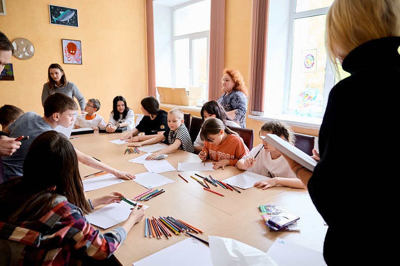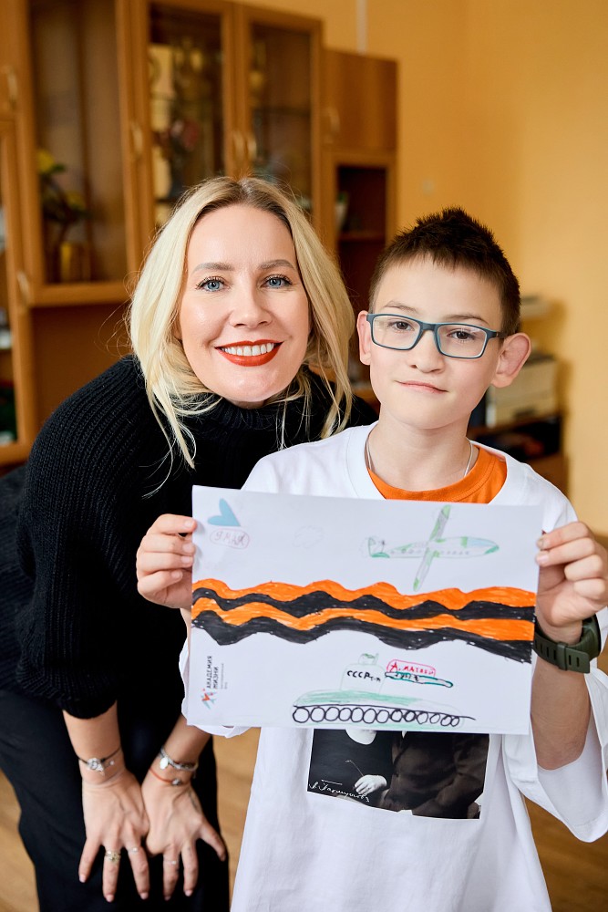 Телеведущая Елена Летучая совместно с детьми из детского дома нарисовали поздравления ветеранам в время поездки Елены в один из детских домов, который находится под опекой фонда «Академия жизни».