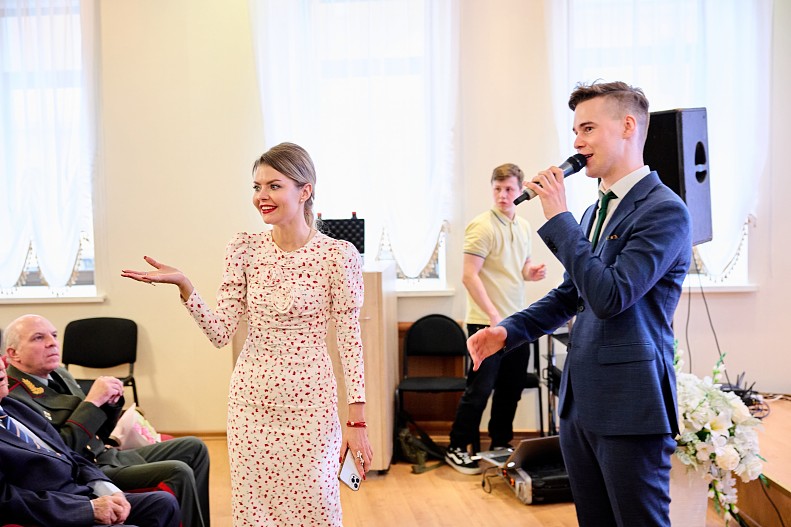 Ведущей творческой встречи выступила Народная артистка РФ, известная актриса продюсер и сценарист, а также друг фонда «Академия жизни» Ольга Погодина. Ольга рассказала о своем опыте работы над военной лентой «Несокрушимый», в основе которой лежит реальная история подвига экипажа советского танка КВ-1. Поблагодарила Ветеранов и отметила невероятную важность семьи и преемственности поколений, а также значимость подобных событий для сирот, которые получают бесценный опыт благодаря подобным встречам.